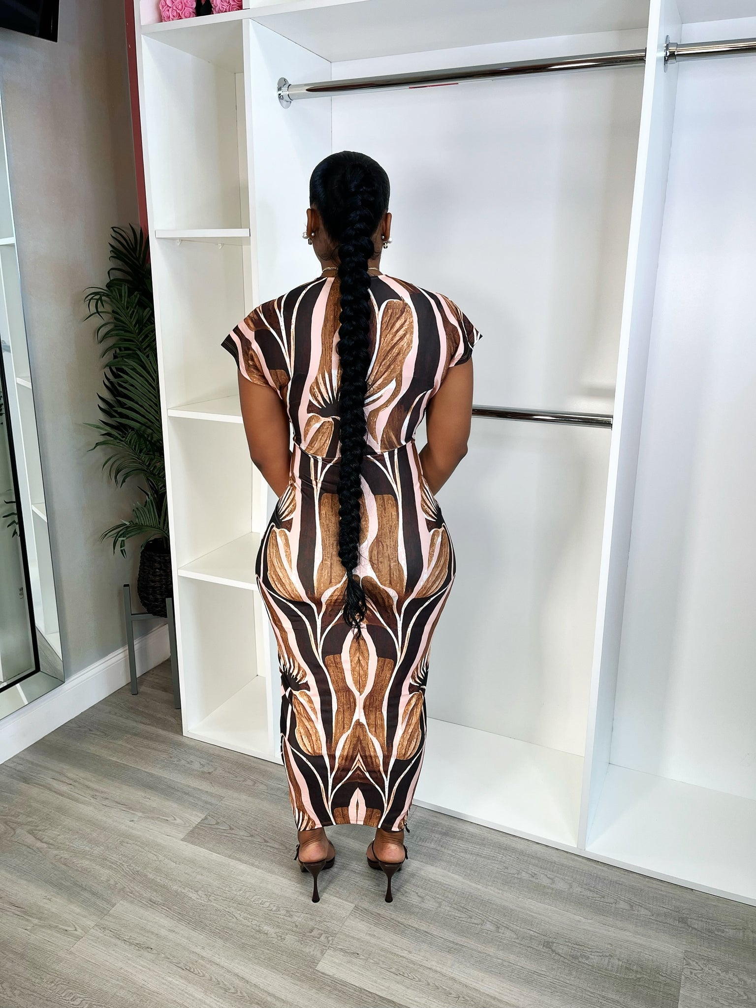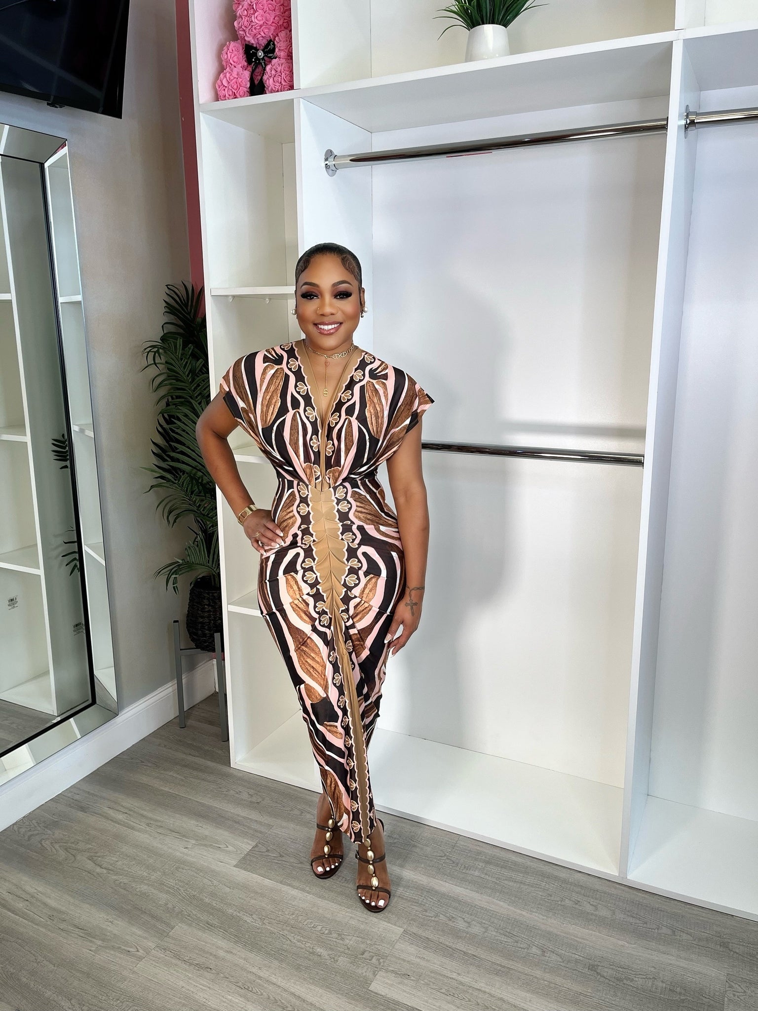 cute brown details front split dress